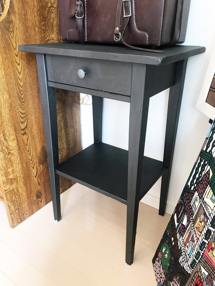 次は5年前に購入をしたサイドテーブルです。もともとは赤の木製のサイドテーブルでしたが、この引っ越しを機にアイアン風に変身させることにしました。